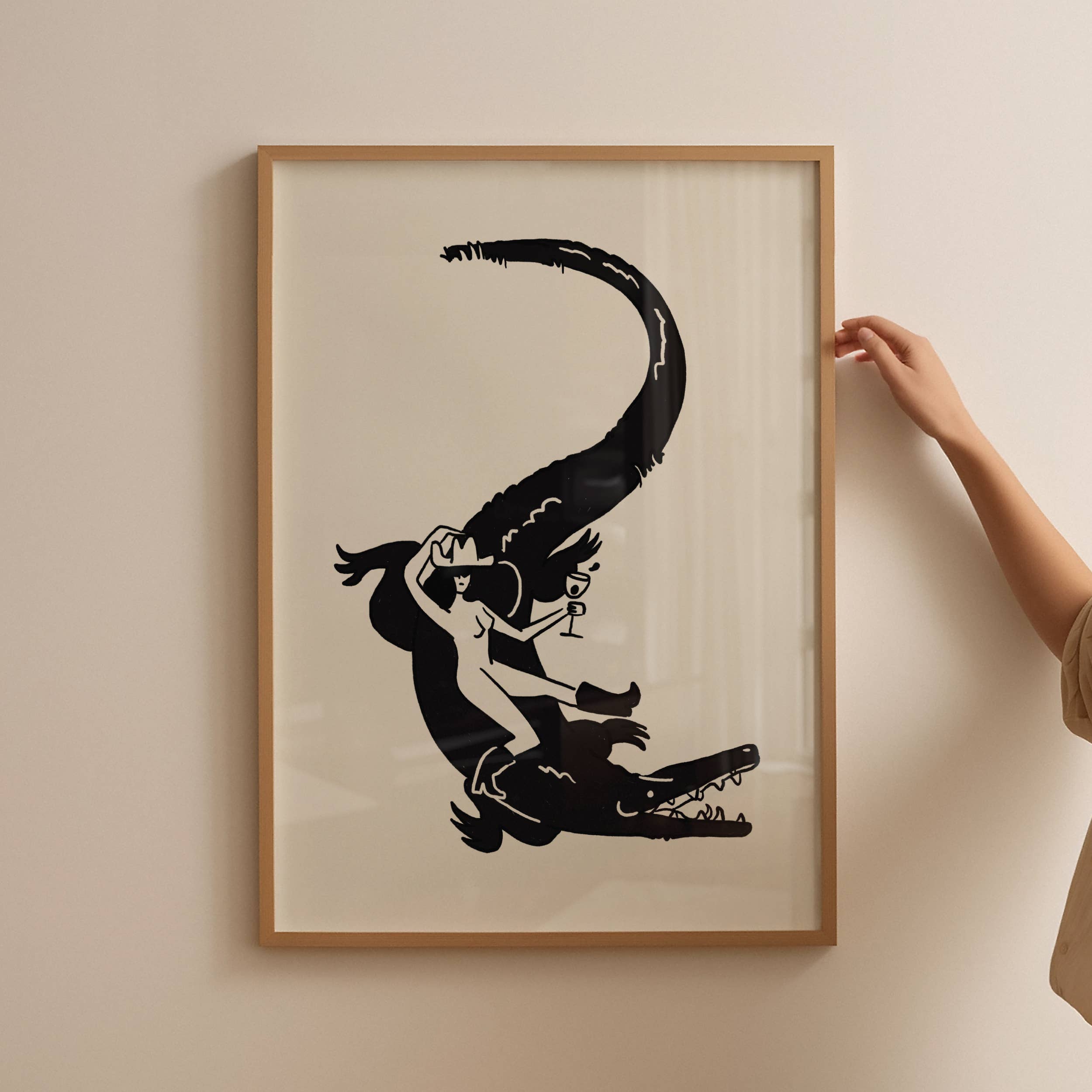 A cool Florida cowgirl casually rides a crocodile while balancing her wine glass. This unframed art print fits perfectly for...