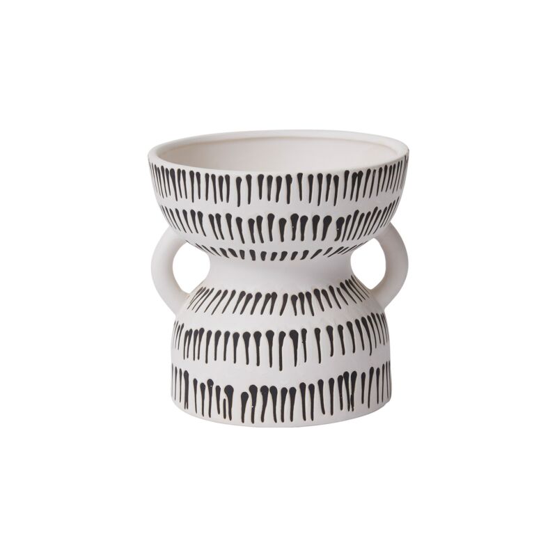 This one-of-a-kind Amazon vase features a distinctive shape, a two-tone finish, and decorative handles, all adorned with a hand-painted modern...