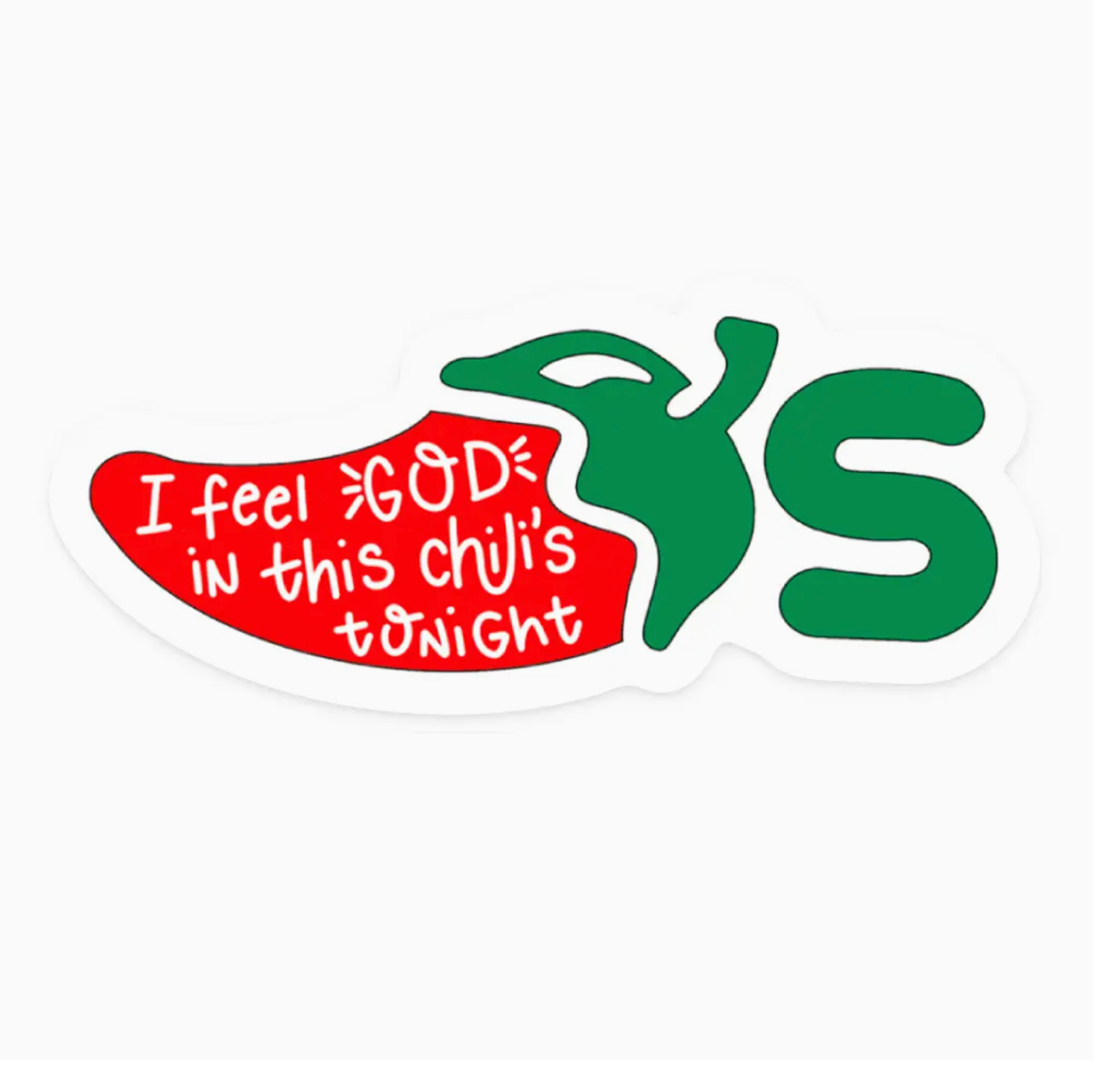 I feel god in the this chili's tonight sticker that is shaped like a chili
