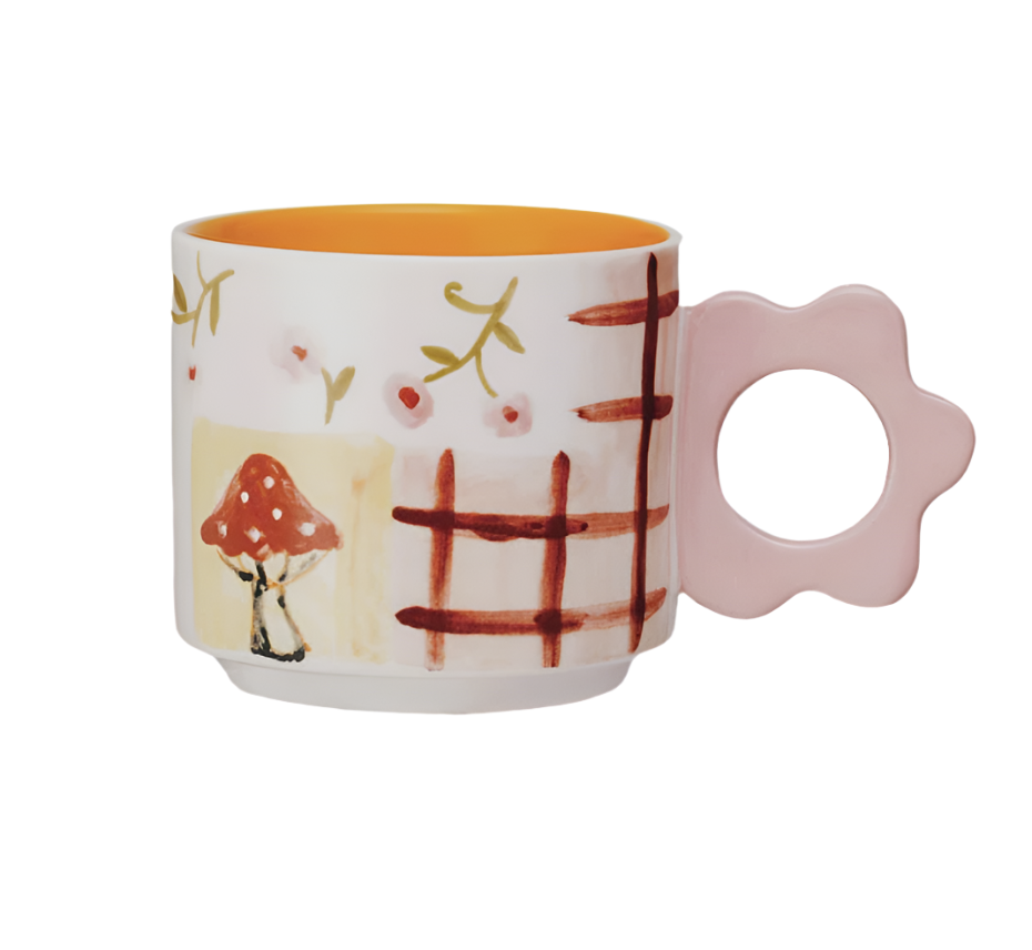 Mushroom and Quilt Floral Stoneware Hand Painted Mug