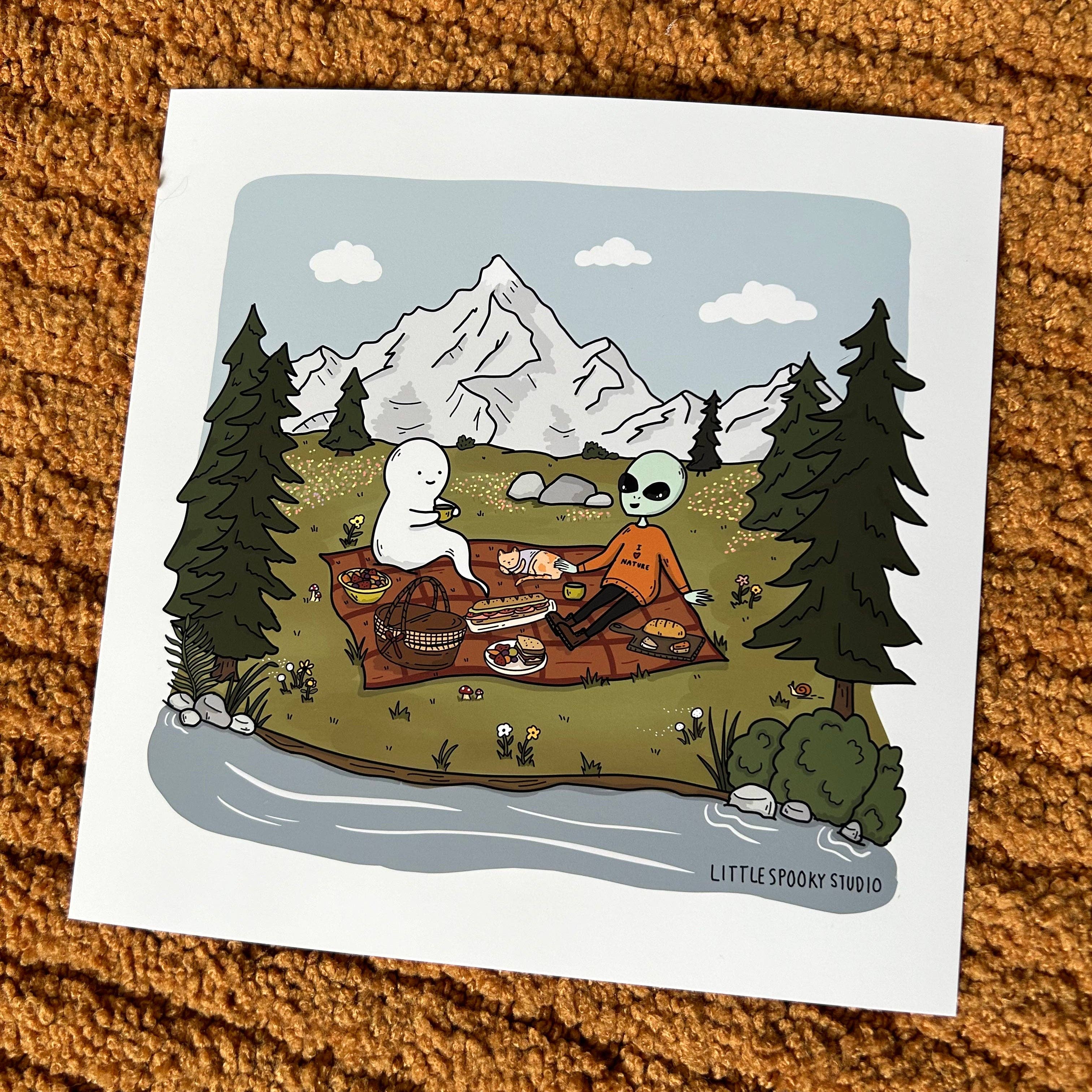 8x8 print of an updated version of my 3 ghost Polaroids doing different autumn activities and also their decorated house!...