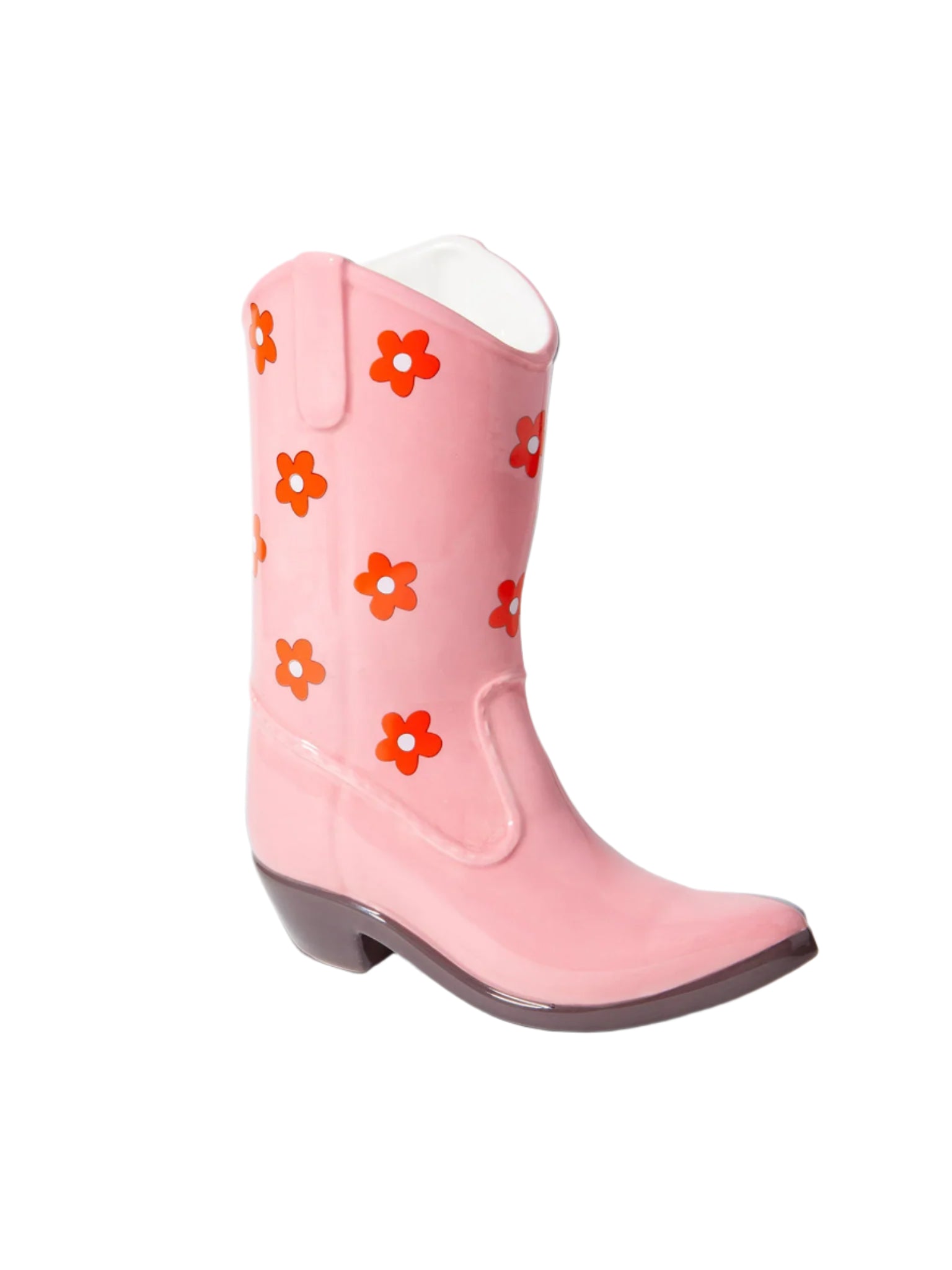 Yee-Haw! This cowboy boot-shaped vase brings a dash of Western chic to any space with its spirited and whimsical design....