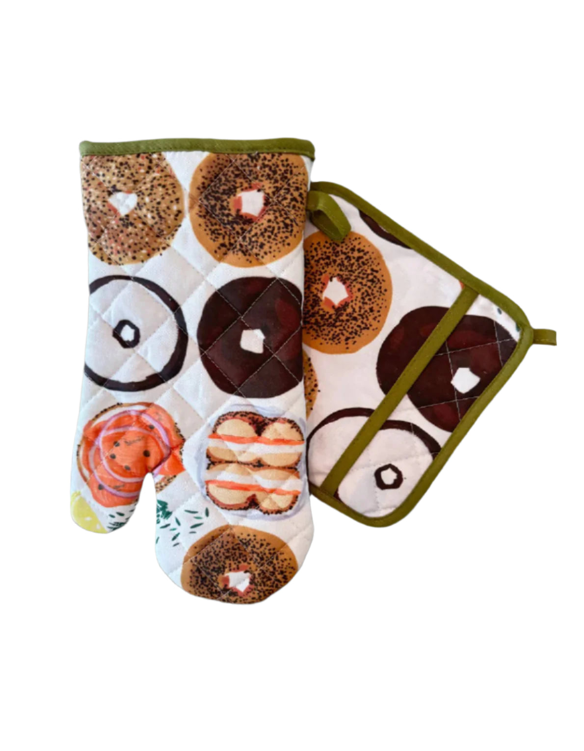 Bagel Cotton Oven Mitt + Pot Holder Set