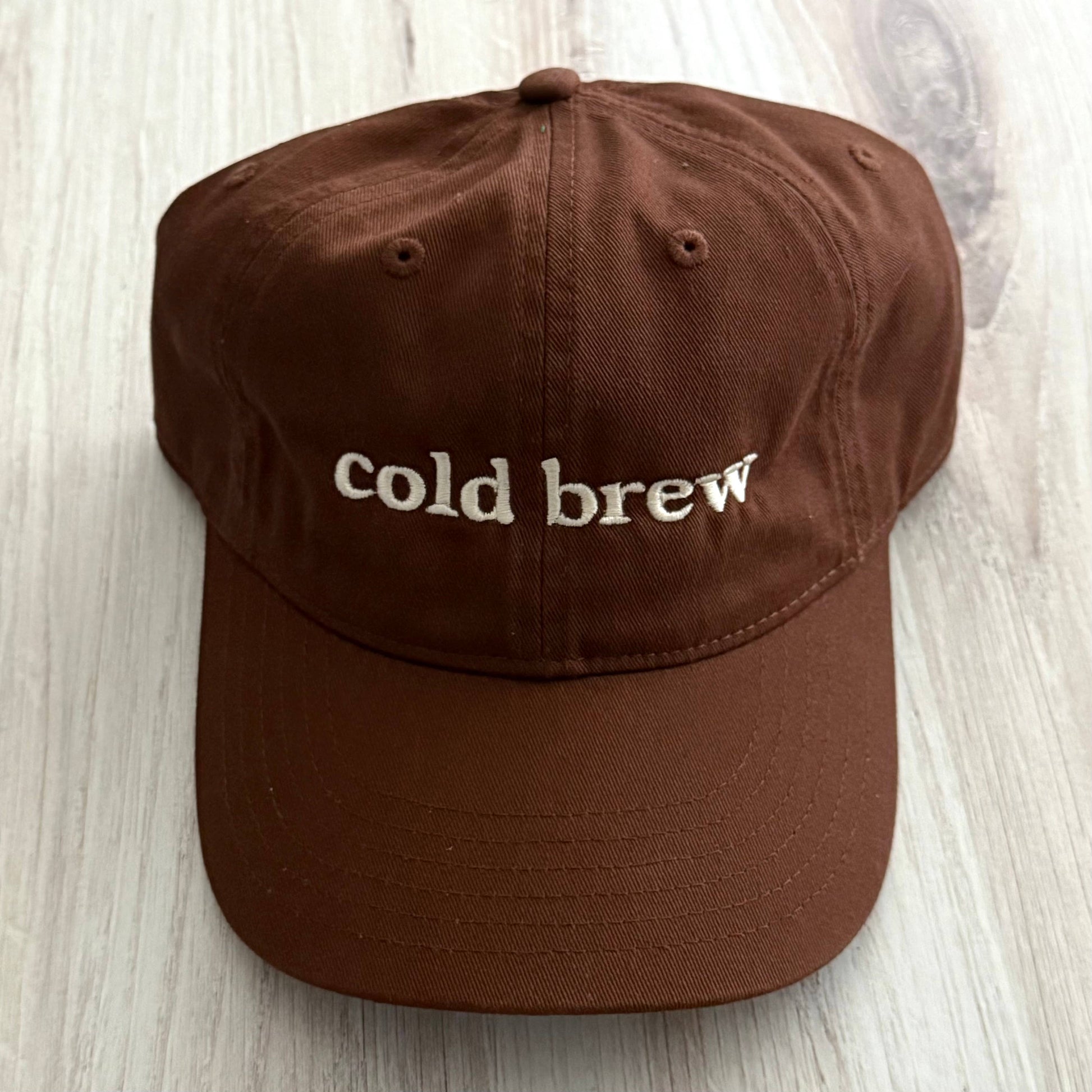 -one size fits most hat in dark brown with beige embroidery -organic cotton -embroidered in the USA